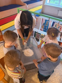 Kartru otrdienu sagaidām 1.PII Ekoskolas brīvprātīgā darba projekta jaunietes -Benedettu un Nairu, ceturtdienās Lejasciema pamatskolas pirmsskolas izglītības grupām piesaistīto Matildi. Meitenes lieliski iekļaujas grupas ikdienas nodarbēs. Bērniem piedāvā daudzveidīgas aktivitātes: angļu valodas nodarbības, praktiskus darbus ar dažādiem materiāliem, zīmēšanas un pirmos gleznošanas pamatus, spēles un rotaļas. Bērniem jaunums ir ukuleles spēle.