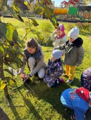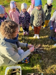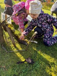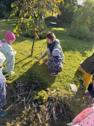 Elisabeth leads activities prepared by herself in groups of 4 and 5 year olds. She creates a "fairy tale garden" in the learning garden and leads a sports activity.
