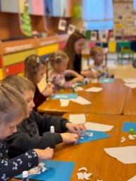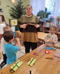 Every Tuesday we welcome the young women of the 1st PII Ecoschool volunteer project - Benedetta and Naira, and on Thursdays Matilde, who is involved in the preschool education groups of Lejasciems Elementary School. The girls fit perfectly into the group's daily activities. Children are offered a variety of activities: English, practical classes with various materials, the basics of drawing and first painting, games and play. A novelty for children is the ukulele game.