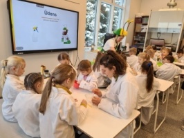 They experienced a research trip to the landfill - circular economy center "Daibe"; got to know the laboratory, its equipment; conducted research on plastic packaging of different goods; got to know chemical safety labels and made a bath bomb from environmentally friendly materials with their own hands.