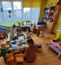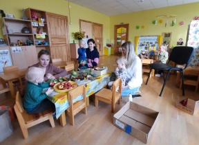 1-2gadīgo mazuļu vecāki, sagaidot rudens saulgriežus, kopā ar bērniem ļāvās krāsu burvībai, veidojot īsteni rudenīgu mākslas darbu- tā aizsākot kopā būšanas prieku un līdzdalību bērnu mācību darba norisēs. Lai veiksmīga sadarbība!