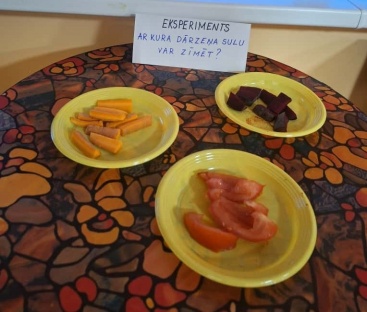 2gadnieki, pētot dārzeņus, rīko tiem košas sacīkstes uz papīra, lai uzzinātu-kurš ir krāsu karalis un jauno gleznotāju draugs.