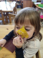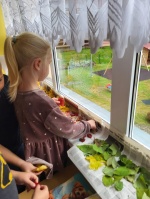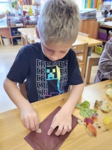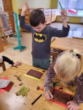 Pētot iespējas kā būt gleznotājam bez krāsām un otas, bērni meklē padomu dabā.