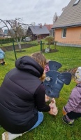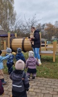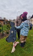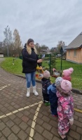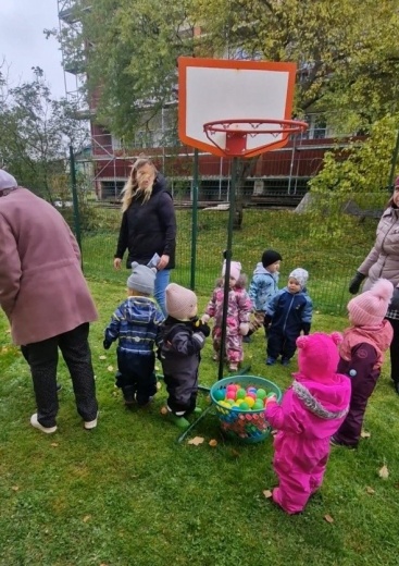 2 gadīgo grupas bērniem par pārsteigumu piezvanīja lācis, kurš šodien spēlēja paslēpes. Viņš grupā bija atstājis maisiņu ar attēliem, kas bērniem bija jāatrod. Lai atrastu pašu lāci, jāveic 3 uzdevumi. Aplūkojuši attēlus ar uzdevumiem, bērni devās ģērbties. Pirmais attēls norādīja virzienu uz kuri pusi ir jāiet un tika atrasts 1.uzdevums. Pie basketbola groziem bija izbērtas bumbas, bērniem tās jāsalasa. Kad uzdevums tika veikts, pēc attēla devās uz 2.uzdevumu. Bērniem jāsaģērbj dzīvnieki, jo ārā ir auksts. Pēc tam, aplūkojuši nākamo attēlu, devās tālāk, kur jau gaidīja 3.uzdevums- sagrupēt kļavu lapas pēc krāsām. Lācis bija paslēpies mājiņā zem lapām un iesnaudies. Bērni, kad atrada bija ļoti priecīgi.