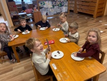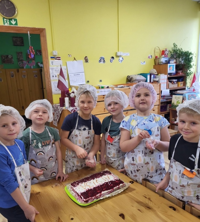 “Rūķītī” šīs prasmes lolojam, attīstām, kopā mēģinot, darot, svinot sasniegto. Arī Latvijas valsts svētkus sagaidot, bērni kopīgi lemj- kā rotāt, par ko atbildēt, kādu cienastu galdos uz baltajiem galdautiem sarūpēt. Pēc lēmuma pieņemšanas noris darbs pie noteikto mērķu sasniegšanas, lai svētku prieks ir kā balva par paveikto, sasniegto spēto!