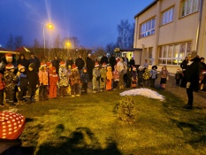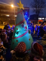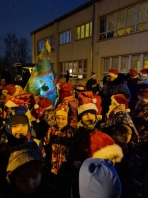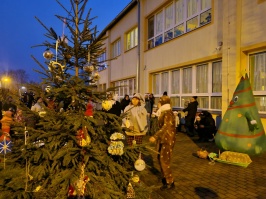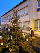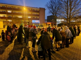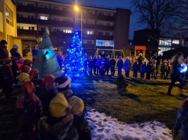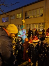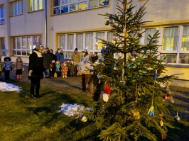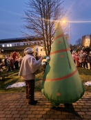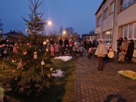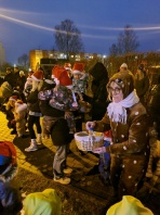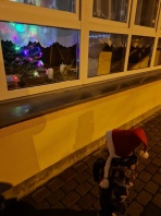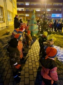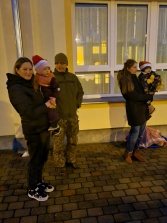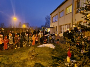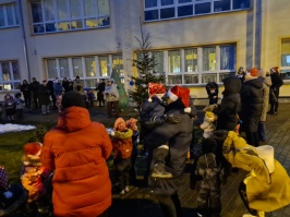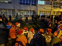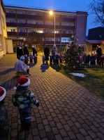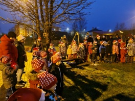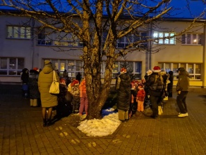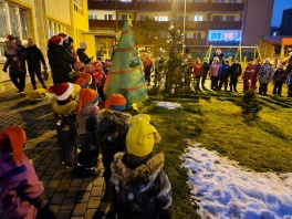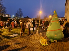 No kopējā prieka arī pagalma vidū rotātā eglīte uzmirdzēja spožās gaismiņās- nu svētkiem ceļš gaišs- gaidīsim atnākam!