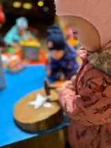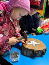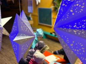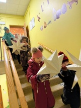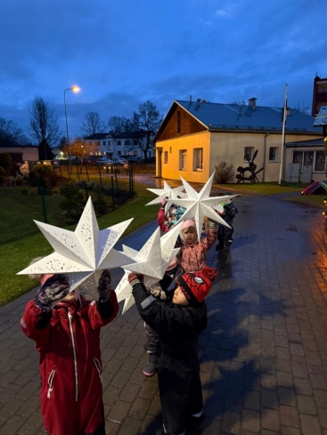 4 gadnieku pūliņi, veidojot spožus zvaigznes dekorus grupas nojumītei, veikti godam. Nu tie jau no tāluma rāda ceļu, kur svētku vecītim nākt ciemos ar dāvanām. Kad darbiņi padarīti, laiks svētku notikumam, kurš vēsta par pasaulē izkaisīto Ziemassvētku stāstu.