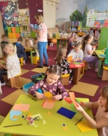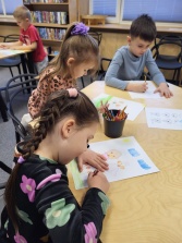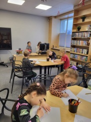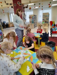 Apmeklē noslēguma nodarbību bibliotēkā. Iesaistās pārrunās par 5 izlasītajām grāmatām, iejūtas bērnu žūrijas lomā un aizpildot anketas veic grāmatu novērtēšanu. Zīmē ilustrācijas grāmatai "Eju meklēt draugus".