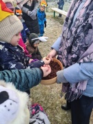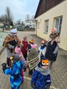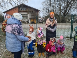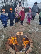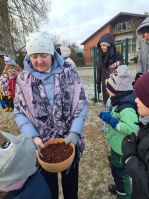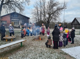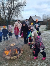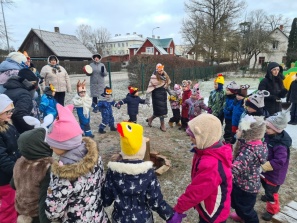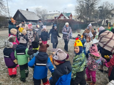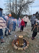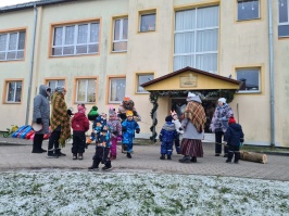 Tā skanēja svētku priekšvakarā, piepildot “Rūķīša” sētu ar tautasdziesmām, maskām un senām tradīcijām, pulcējot gan lielus, gan mazus, atvadoties no vecā gada un visa nevajadzīgā. Mūzikas skolotāja Līga, 4-6gadīgo grupu bērni un iestādes darbinieki kopīgā masku gājienā pa iestādes sētu, līdzi paņemot pelēkās domas, darbus un notikumus, lai, bluķim atdotus liktu ugunskurā, tā dodot vietu nākotnes veiksmei.