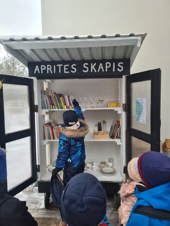 Bērni atsaucās arī piedāvātajai iespējai- izmantot aprites skapi, kurā nogādā vai var saņemt lietas, kas vēl ir lietojamas un var noderēt kādam citam(vēl lietojamas sadzīves mantas, kā, piemēram, darbarīki, darba instrumenti, trauki un grāmatas). Šīs rīcības mērķis- samazināt to lietu, kas vēl derīgas lietošanā, nonākšanu atkritumos, kā arī, lai veicinātu atkārtotas izmantošanas, jaunu atkritumu neradīšanas principu un aktualizētu sabiedrības rīcības maiņas nepieciešamību.
