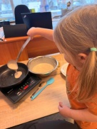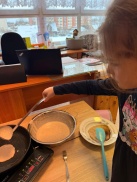 Vienā no aukstākajām šīs ziemas dienām 4gadīgo grupā piedzīvojām kopīgu pankūku cepšanu, kurā matemātika kļuva dzīva, garšīga un ļoti smaržīga.