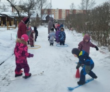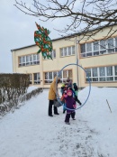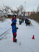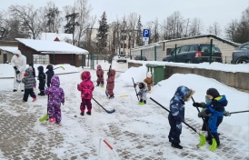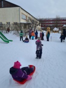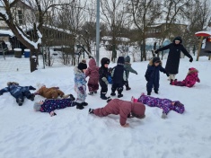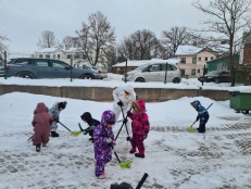Bērni vingroja, vizināja draugus ar ragavām, slēpoja, spēlēja hokeju un meta pikas mērķī, un vēl, un vēl- kopā ar Sniegavīru.